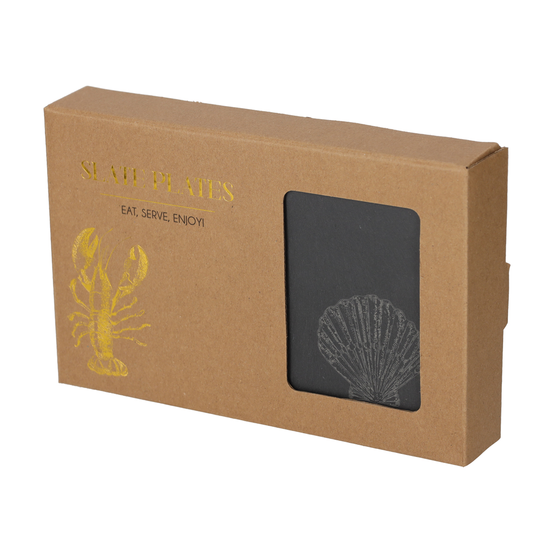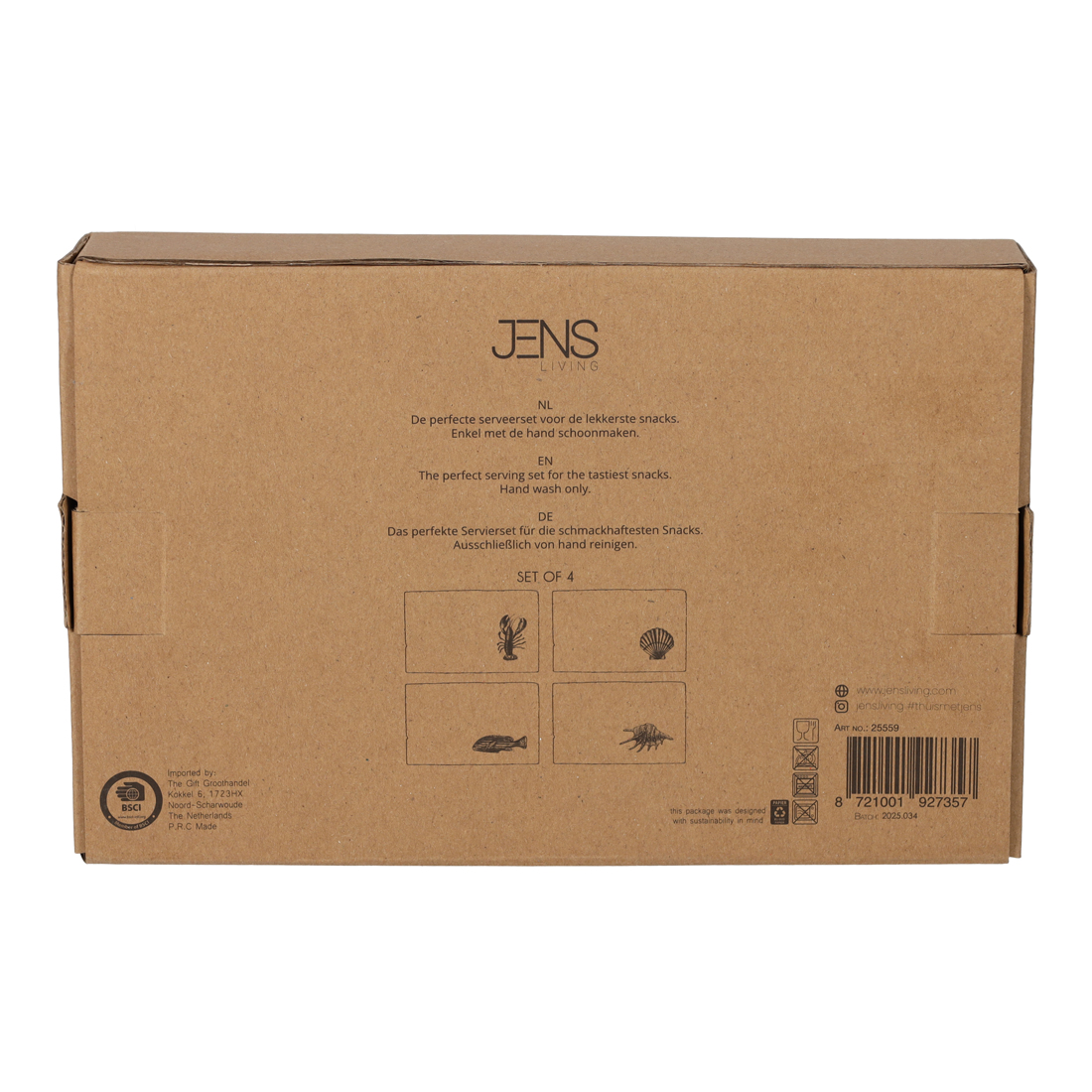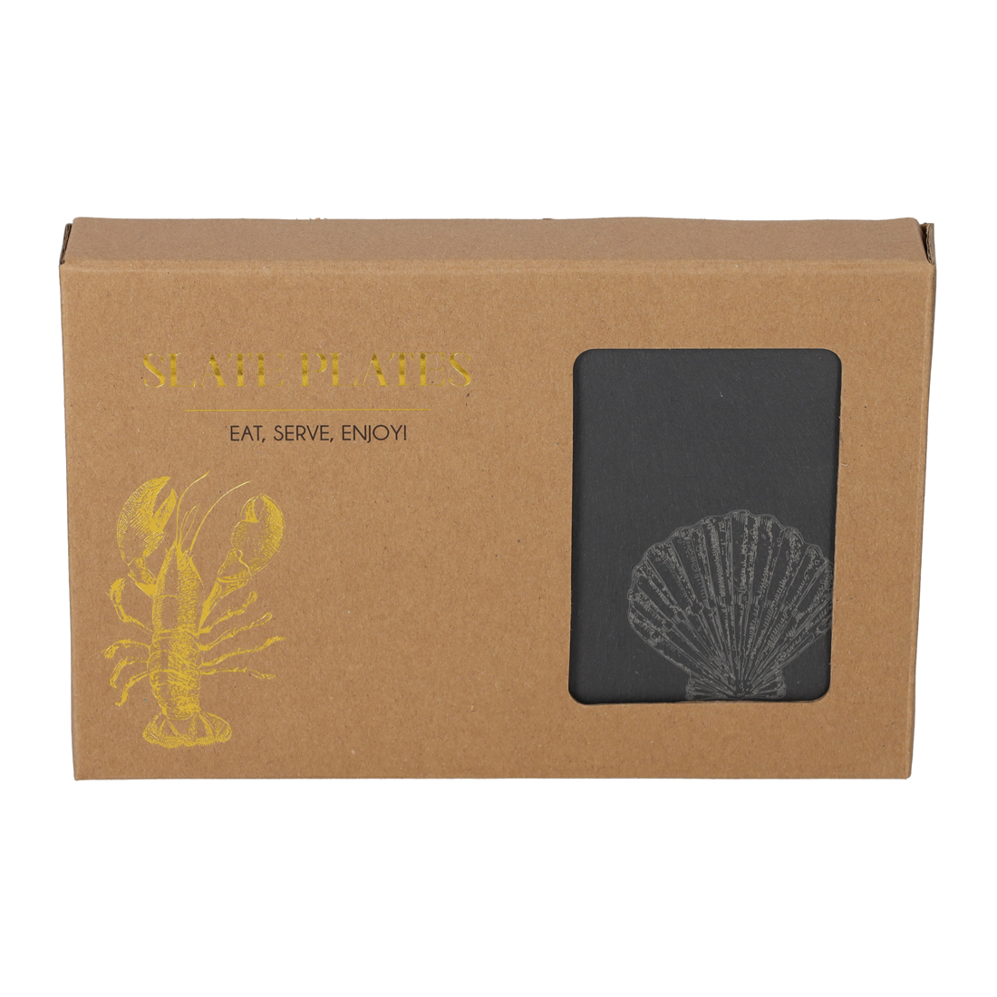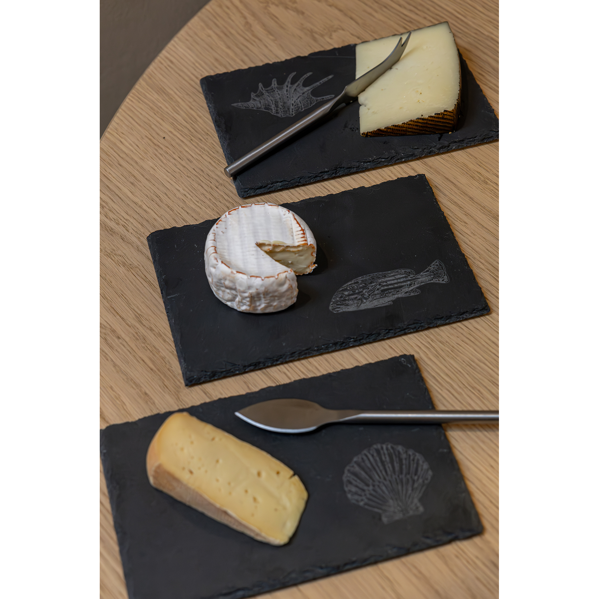 Deze set bestaat uit vier serveerplanken van leisteen. Ieder plankje heeft een eigen gravering in zee-thema, wat een unieke en speelse uitstraling geeft. Een ideale set voor het presenteren van hapjes, voorgerechten of zeevruchten.